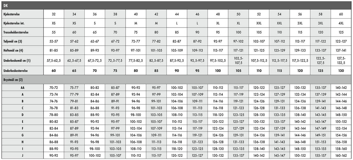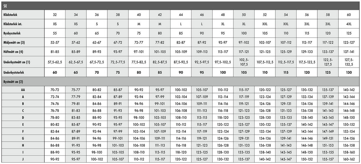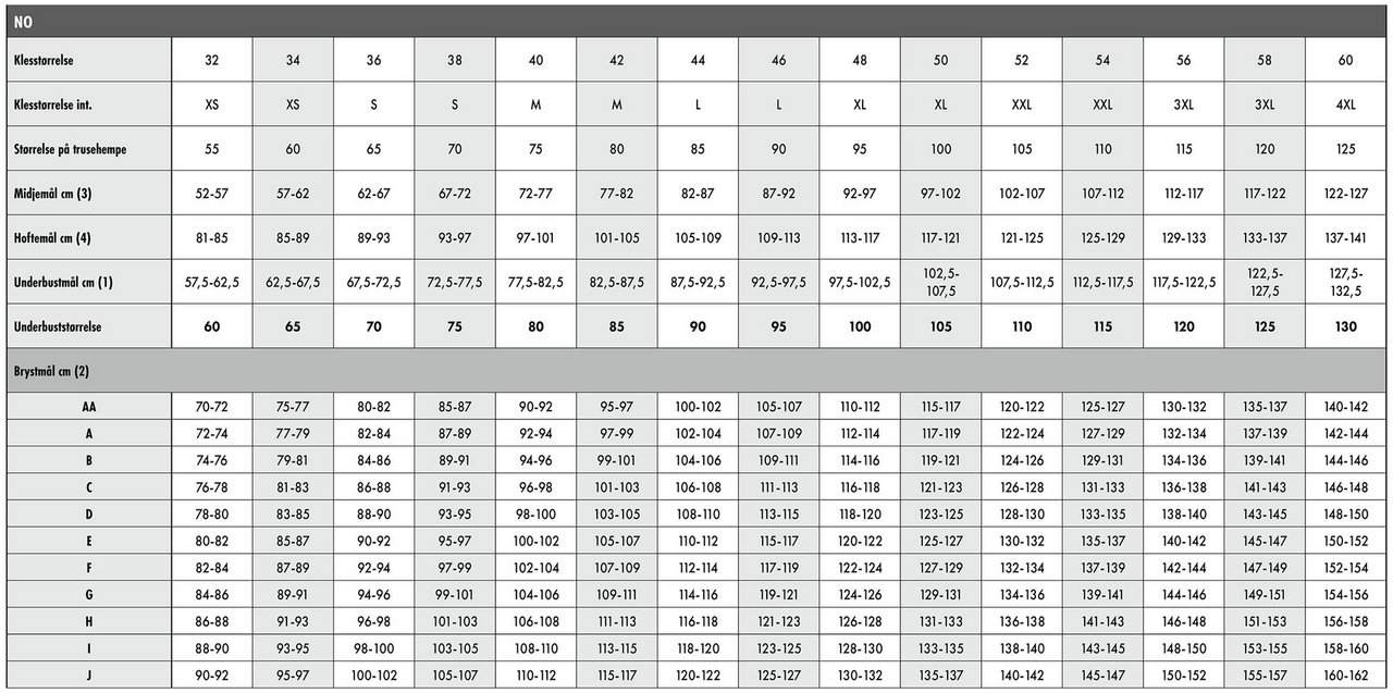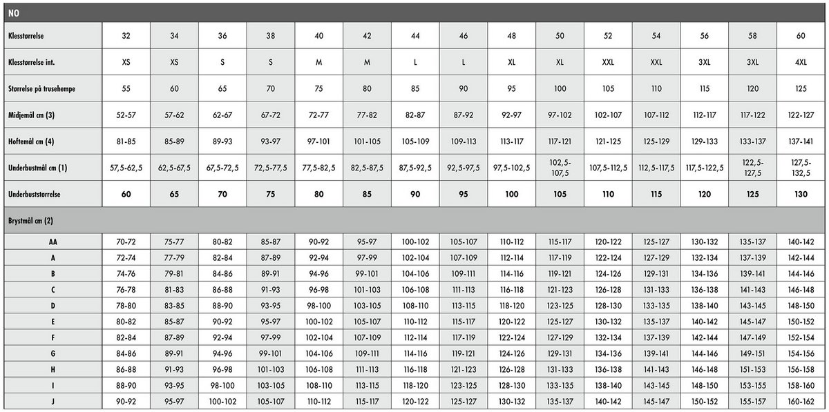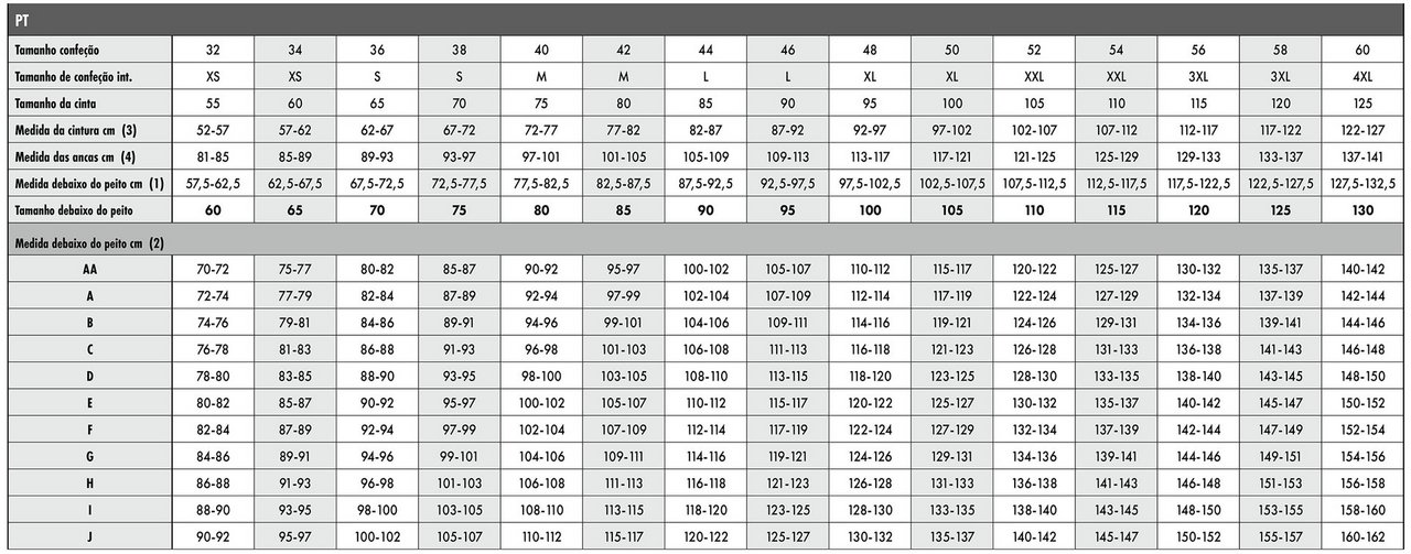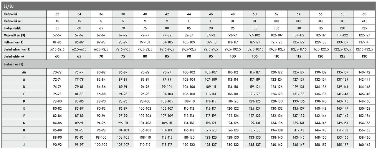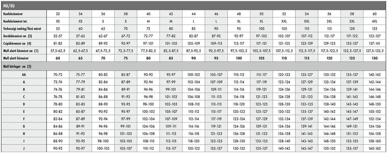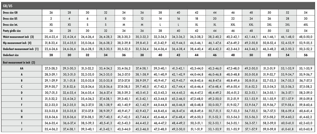 Take the measurement by holding the tape directly under the bust (1). This measurement determines