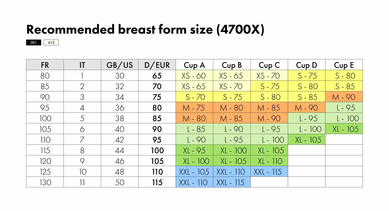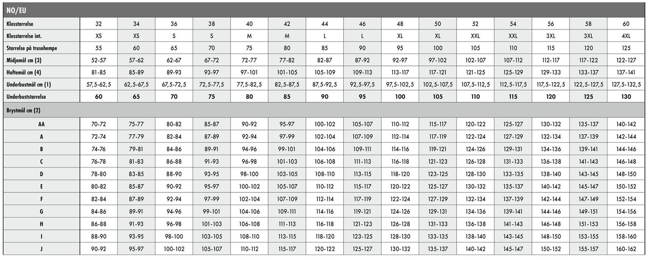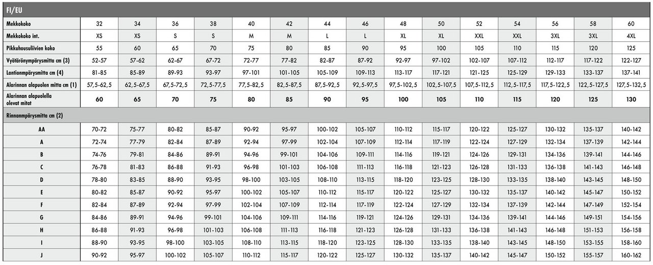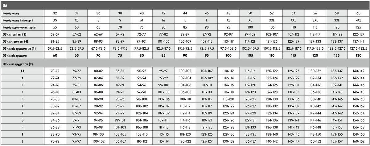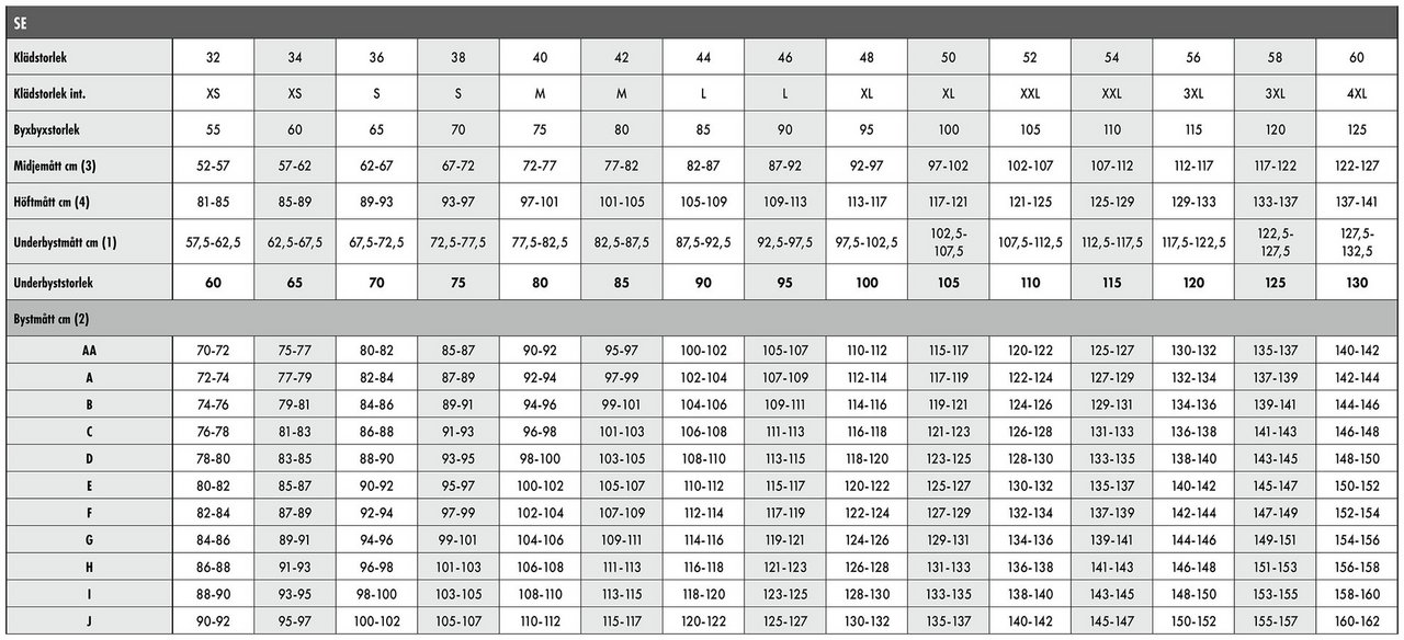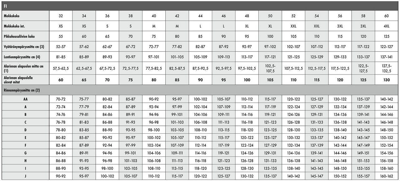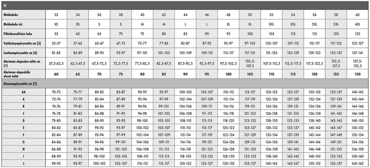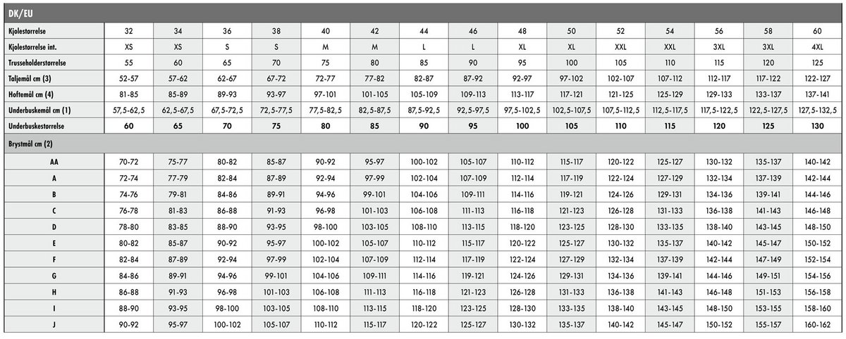 Take the measurement by holding the tape directly under the bust (1). This measurement determines