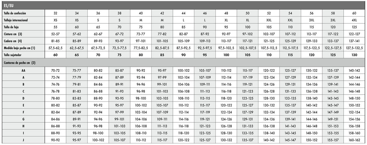 Con la tabla de tallas cruzadas, encontrará facilmente